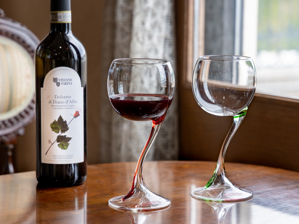 ソアーヴェは曲線で形作られた特徴的なデザインをしたワイングラスです。