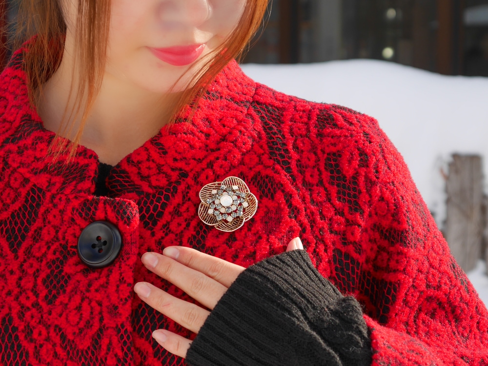 ブローチのおしゃれは、古い映画のヒロインのように、