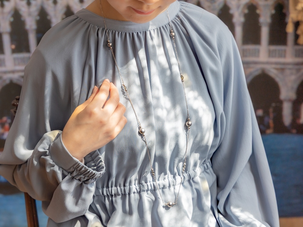 優美な美しさのガラスパールネックレスは、付け心地も軽やか。 大切な方へのプレゼントはもちろん、毎日の装いにワンポイントを加えるアクセサリーとしてもおすすめです。