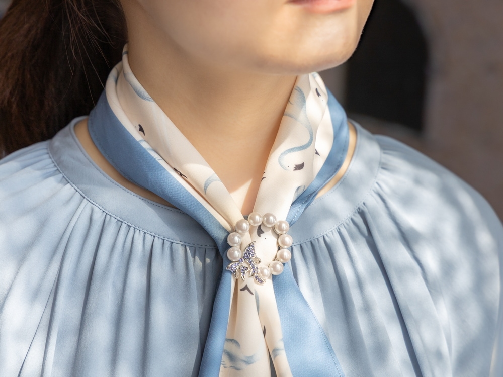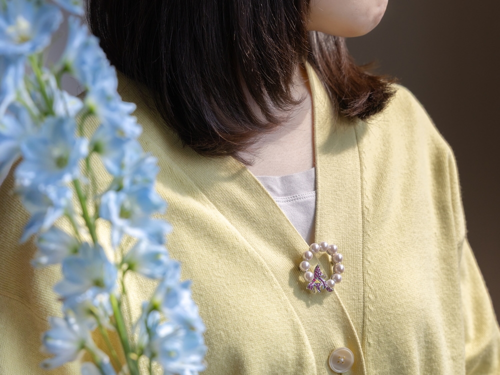 ハレの日のフォーマルなお洋服の他、普段使いもしやすいアクセサリーブローチです。 胸元を飾るだけでなく、ネックレスやスカーフ留め、帽子のアクセサリーなどにもご使用いただけます。 ブローチはお手持ちのアイテムに魔法をかけるアクセサリー。 あなたのアイデアで、おしゃれの楽しみ方が無限大です。