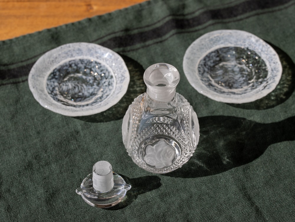 ★サンドブラスト醤油差し雪の結晶大小 (木箱付)