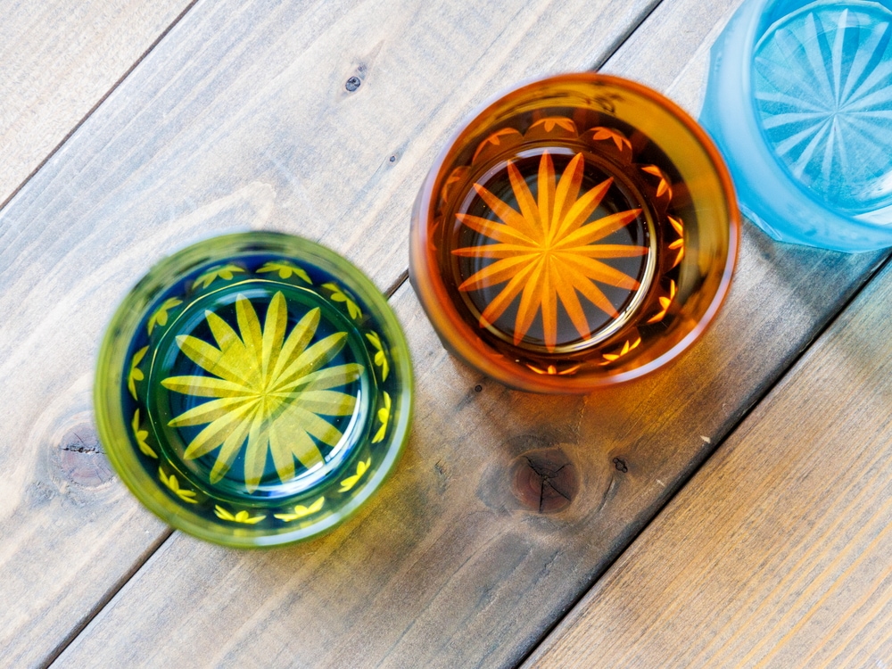 一点一点手作り硝子だからこそ、グラス底の菊切子にも個性がある為、