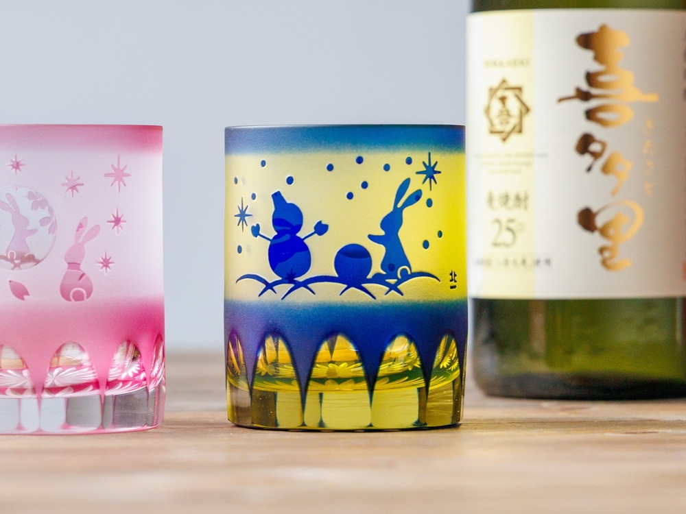 の四季を慈しむ、可愛らしいうさぎの姿に癒されるグラスです。