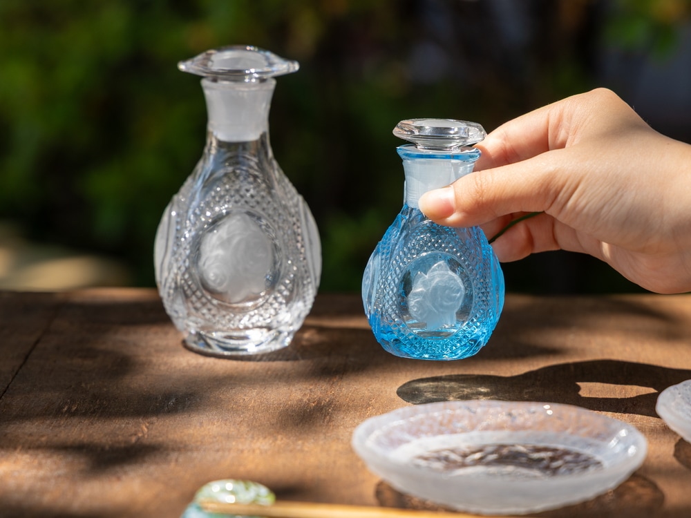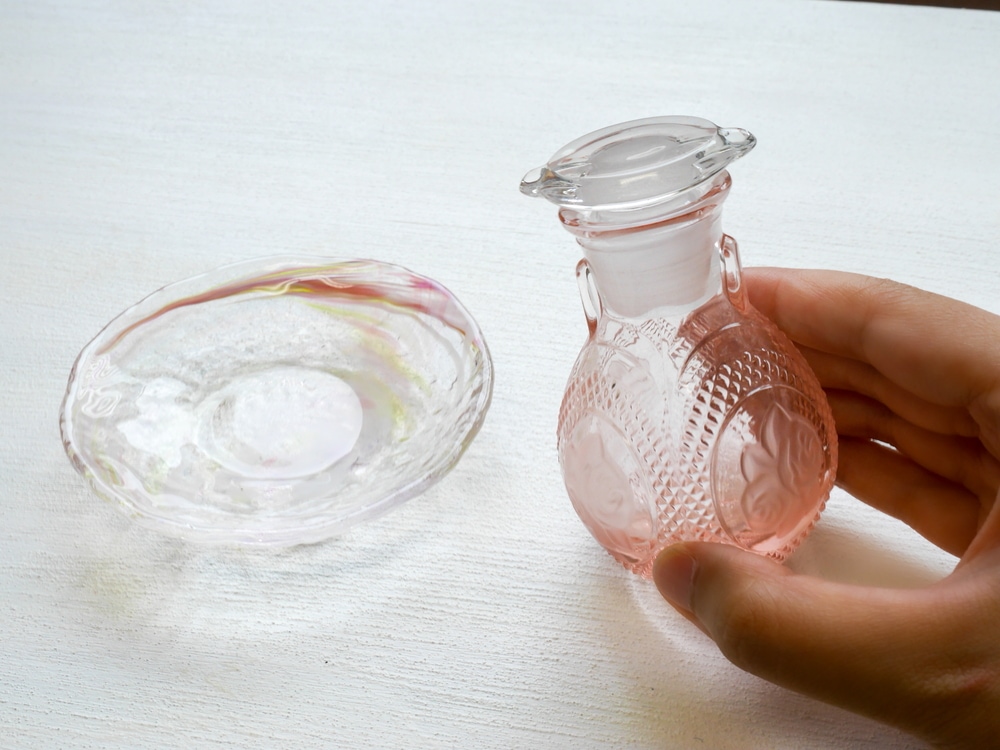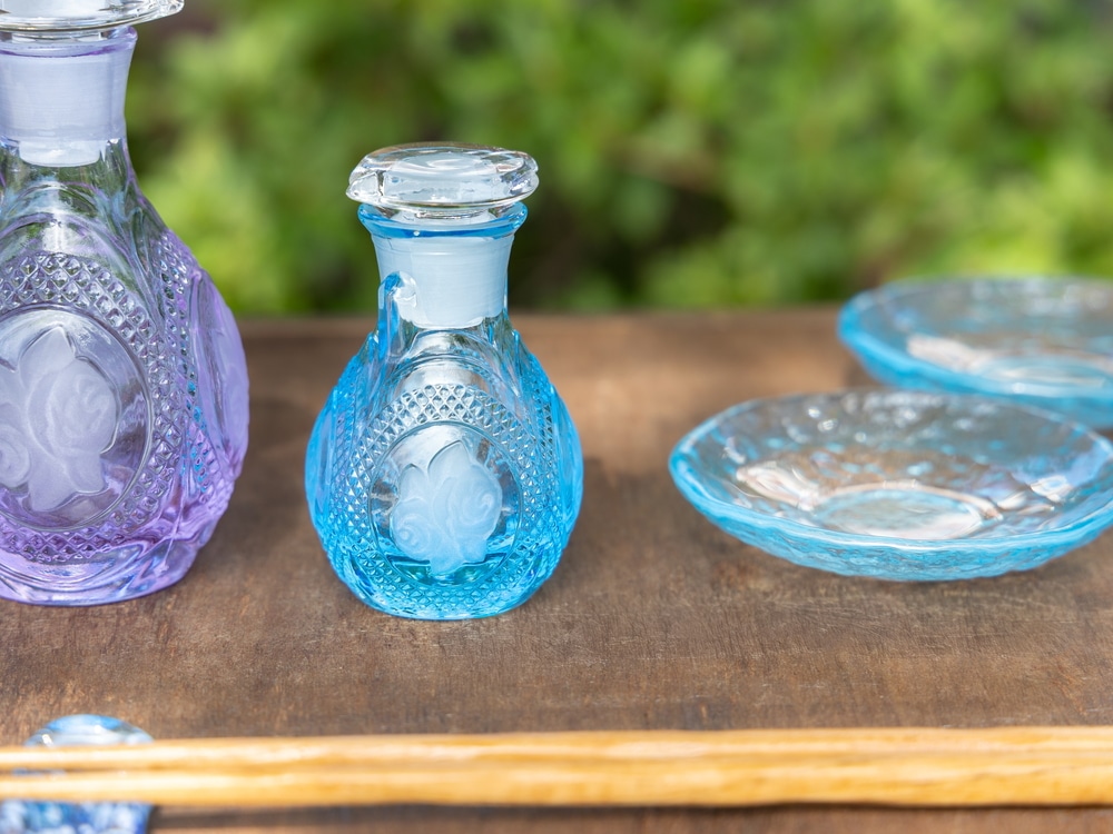 バラ柄醤油差し(大)と組み合わせて、減塩醤油、出汁醤油、お酢など、 好みの調味料を入れて使い分けもお楽しみ頂けます。 お客様からの様々なご要望により、さらに研究を重ねた北一硝子のオリジナル商品です。
