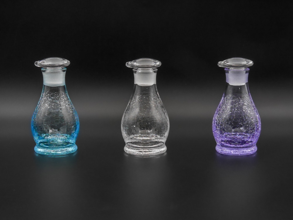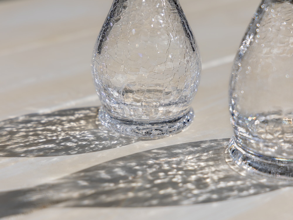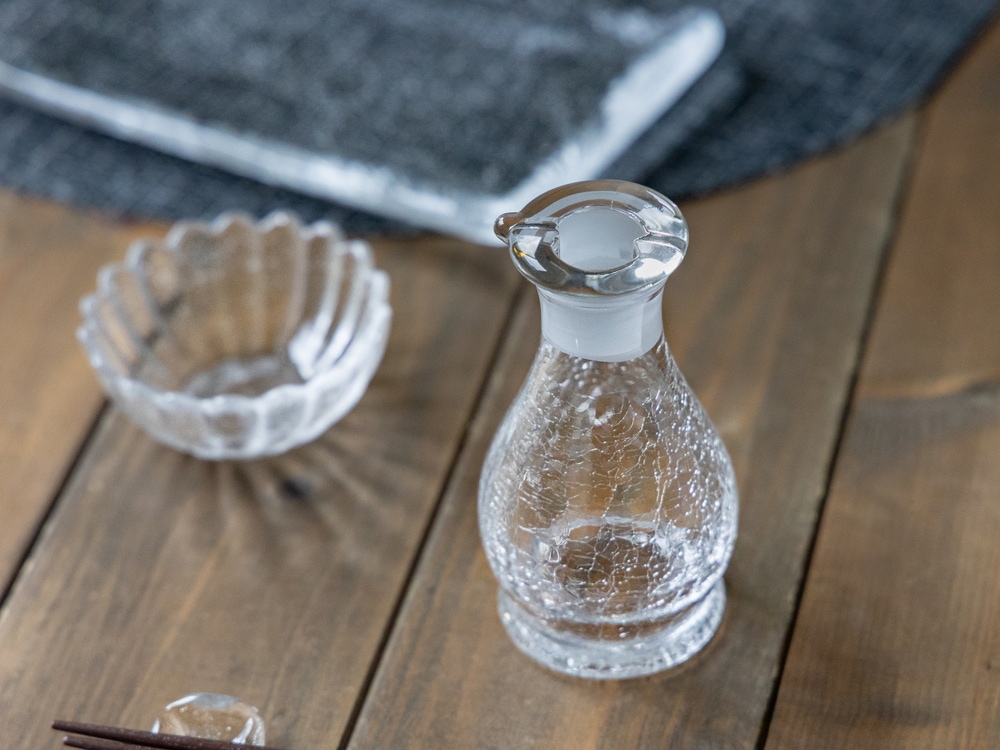 硝子がまだ熱いうちに瞬間的に水につけて急冷することで、その表面だけに薄く細かいヒビ模様を生み出すという職人技。 きらきらと輝くヒビ模様の硝子を手に、涼しさと鮮やかな職人芸をお楽しみください。