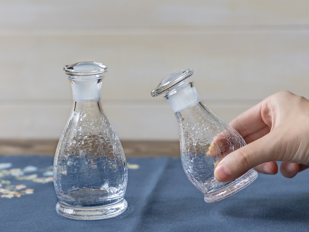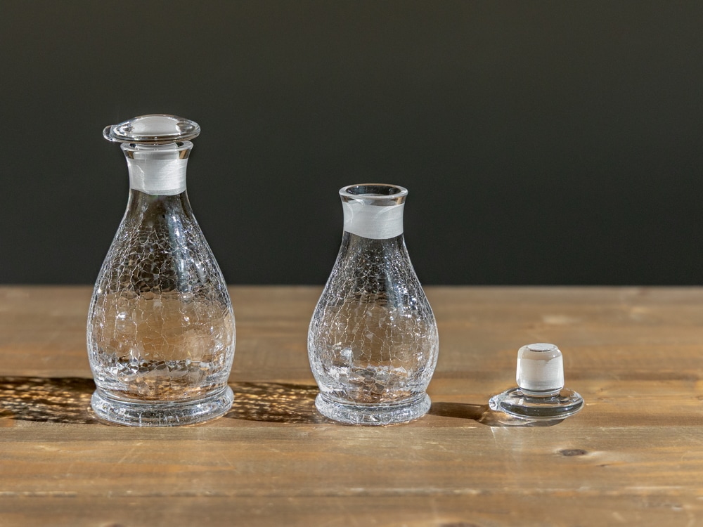 ★【片口栓タイプ】氷の華醤油差し 大小セット(木箱付)