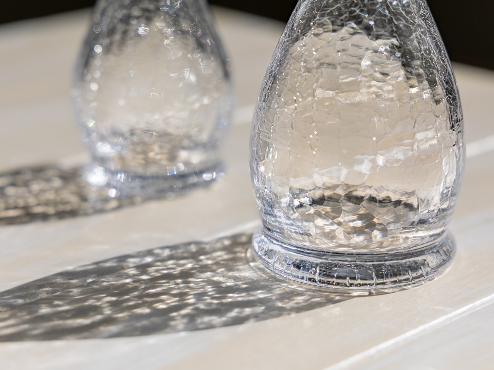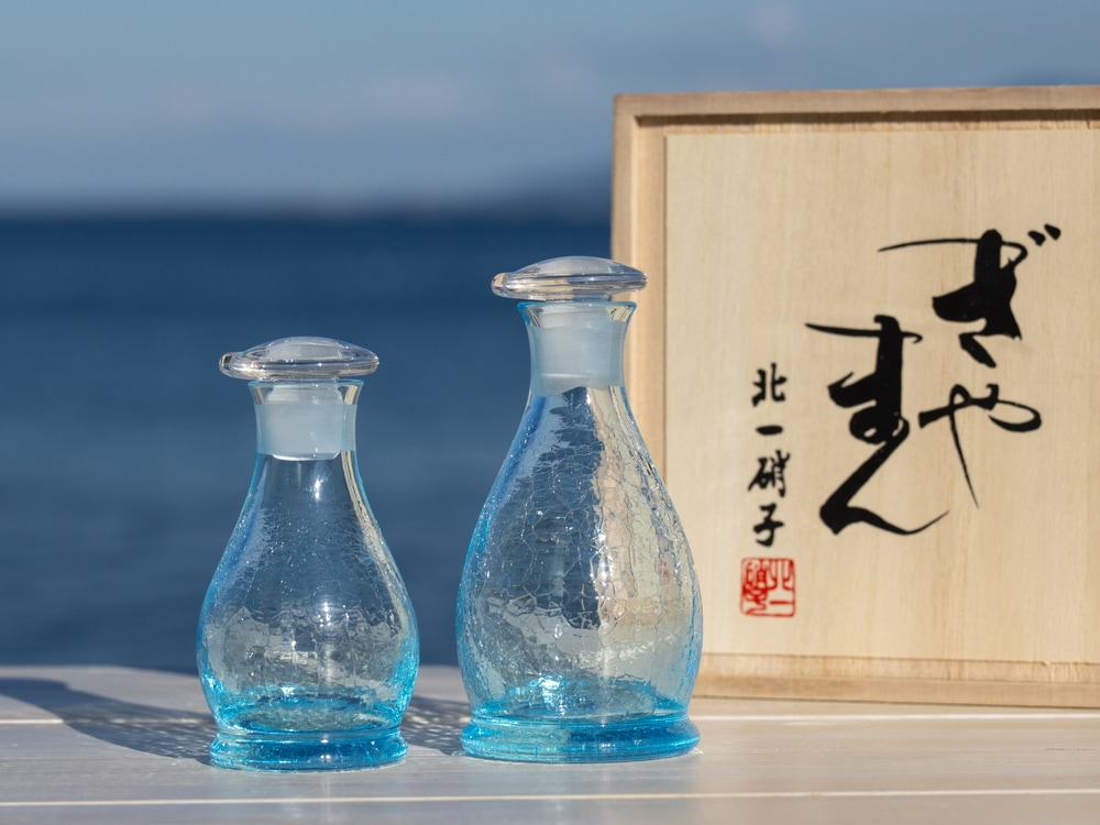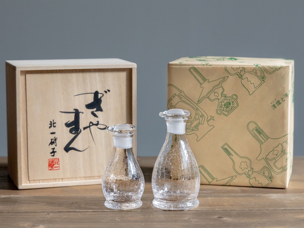 硝子がまだ熱いうちに瞬間的に水につけて急冷することで、その表面だけに薄く細かいヒビ模様を生み出すという職人技。 きらきらと輝くヒビ模様の硝子を手に、涼しさと鮮やかな職人芸をお楽しみください。