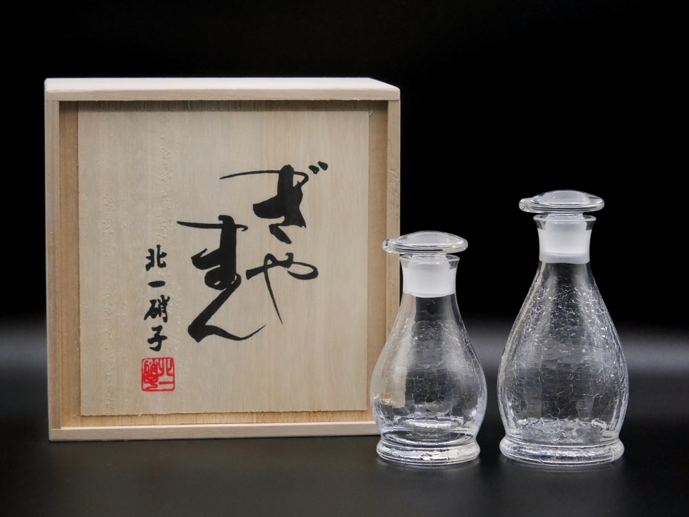 ★サンドブラスト醤油差し雪の結晶大小 (木箱付)