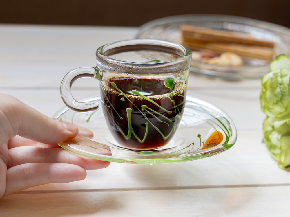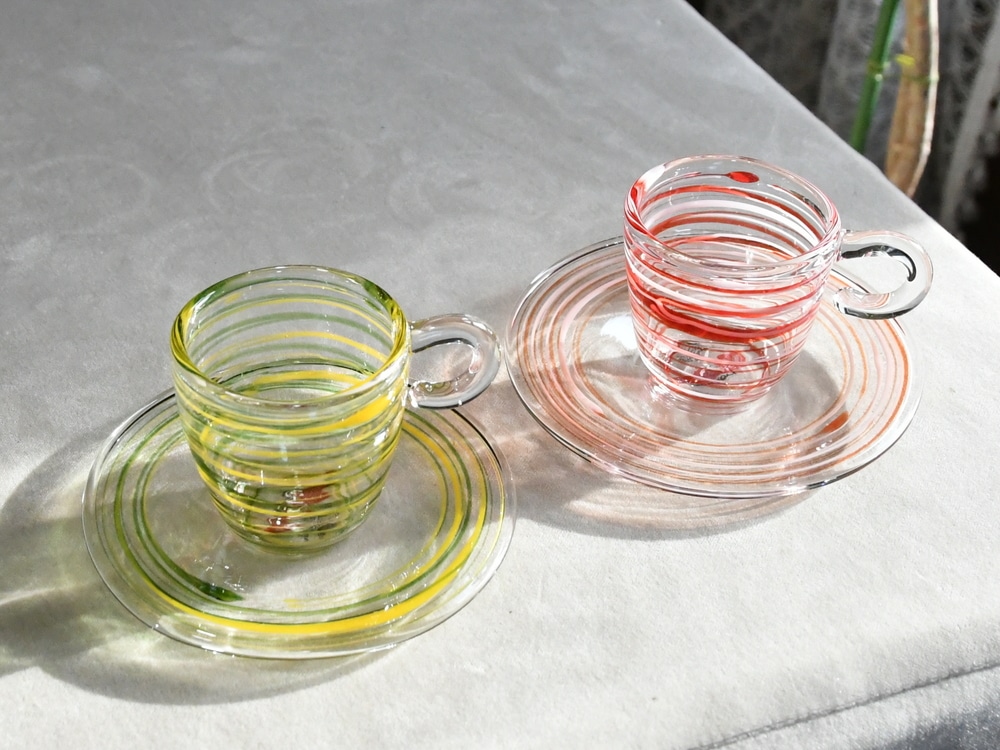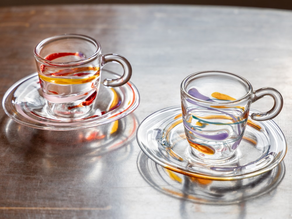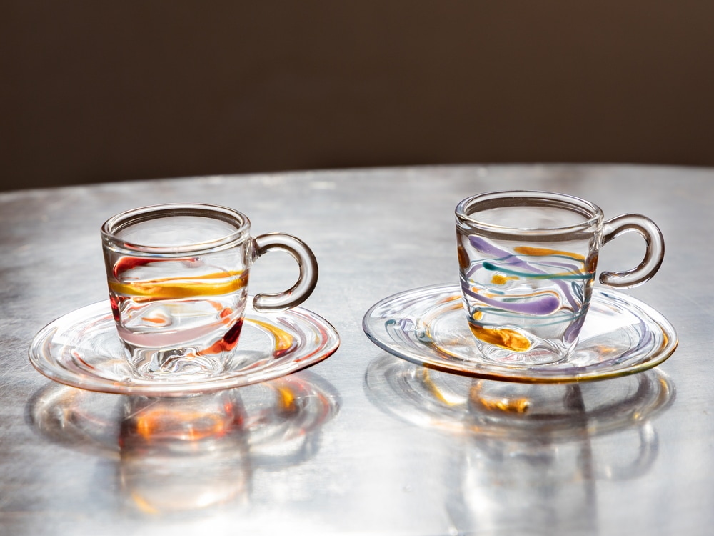 エスプレッソのような濃いコーヒーを淹れるグラスとして使用される、デミタスカップ。