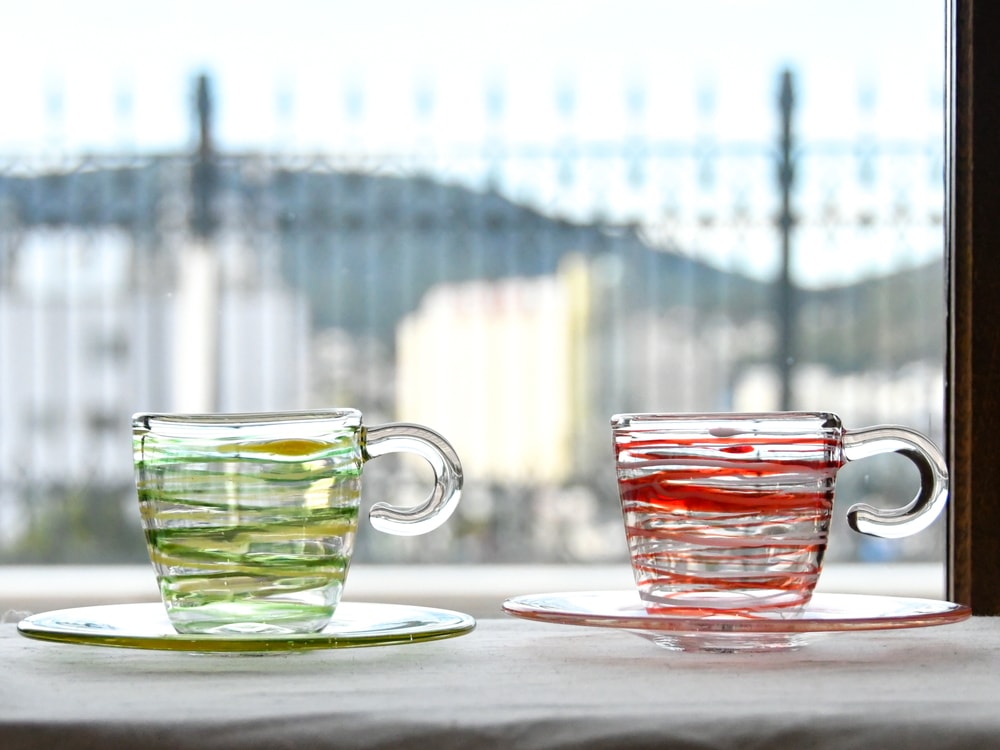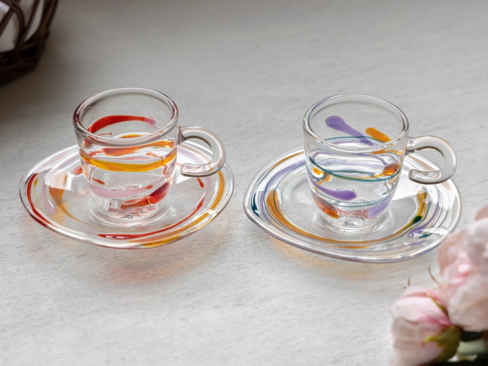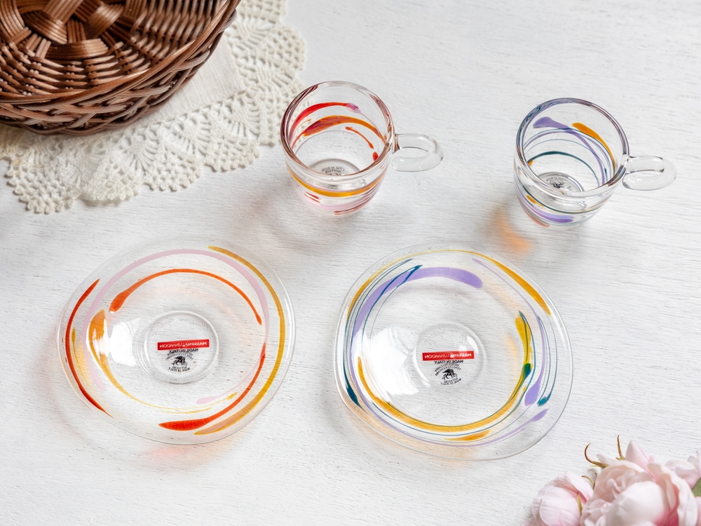 ガラスの透明感を活かした目にも楽しいカラフルなデザイン。