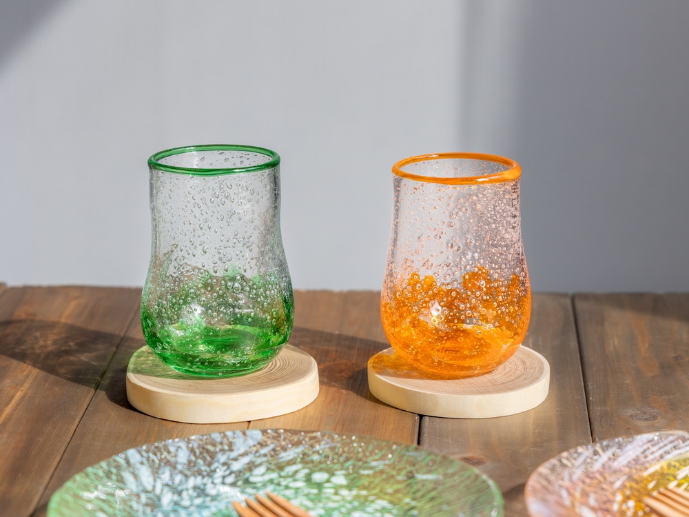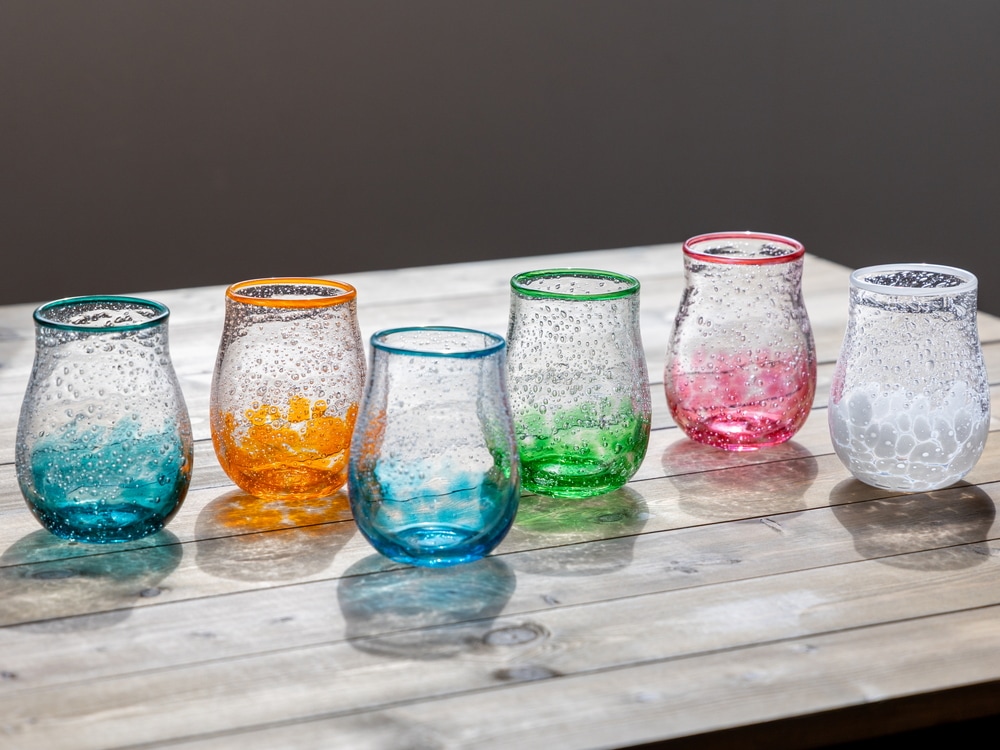 硝子を竿に取り、型を使わずに空中で形を整える「宙吹き技法」を用いている為、それぞれに個性がある一点ものです。
