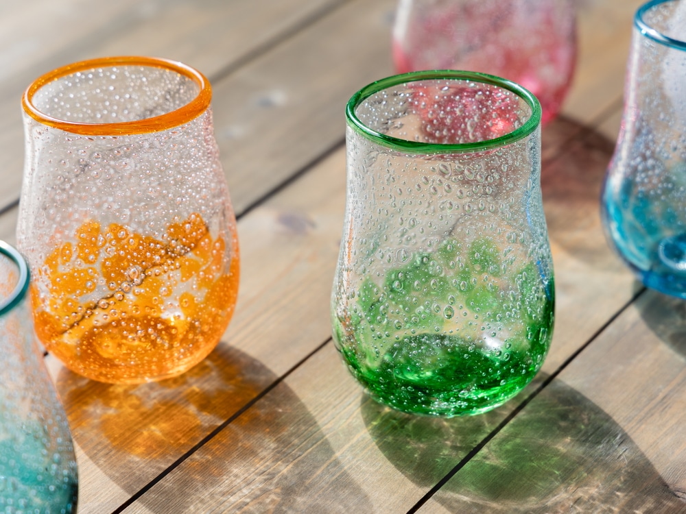 「泡しぶき」の名のとおり、元気よく弾ける炭酸のように数多の気泡が躍るグラスです。