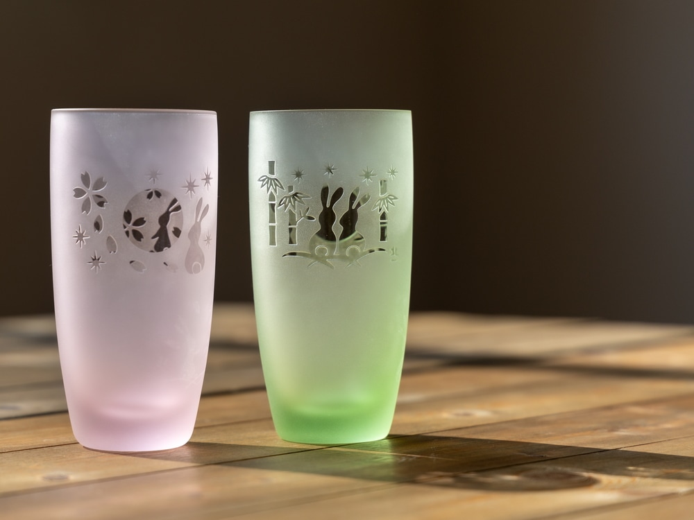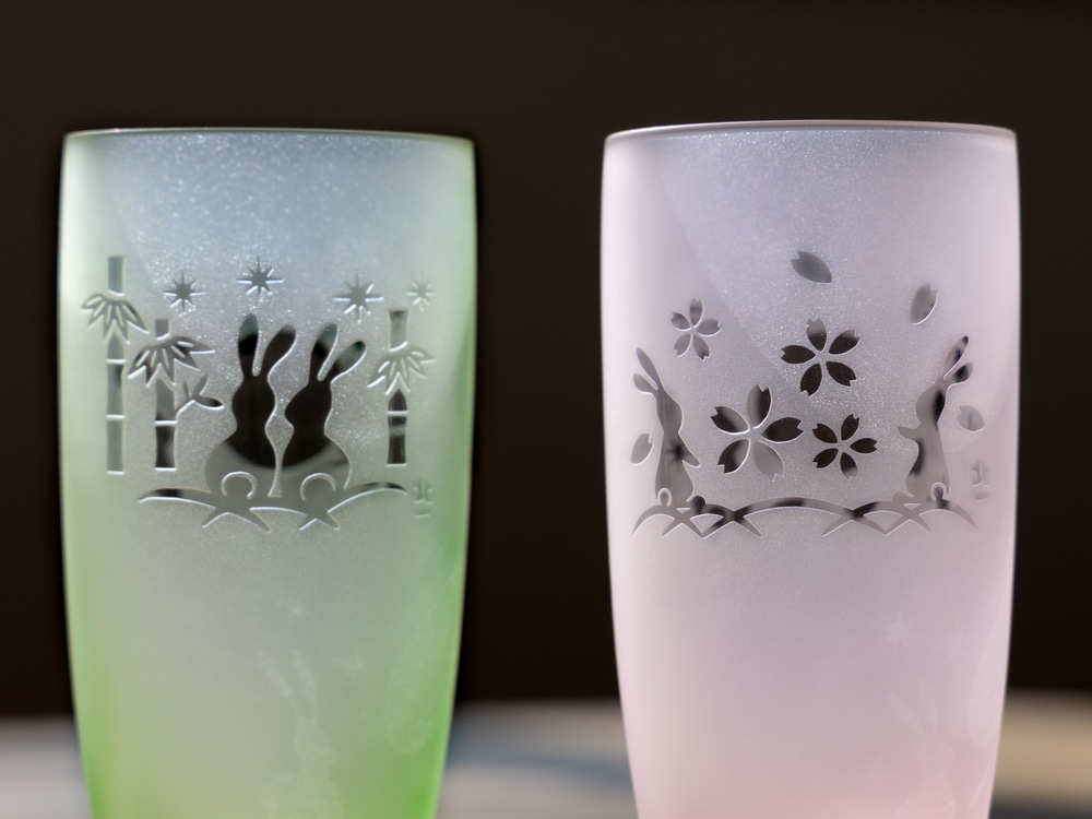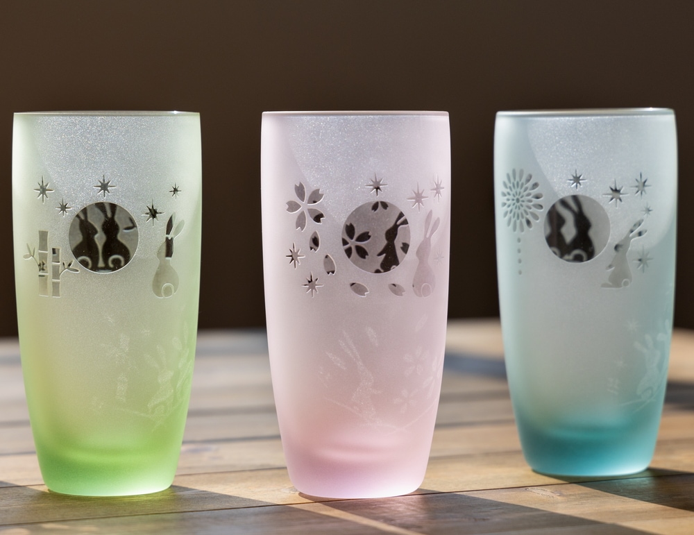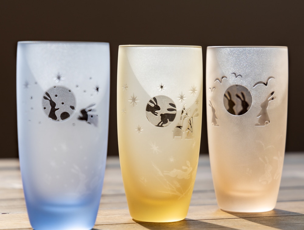 手作業で製作した硝子には、同じ商品でも重さや色・柄の不揃い、空気の泡、製作上の跡なども残っております。