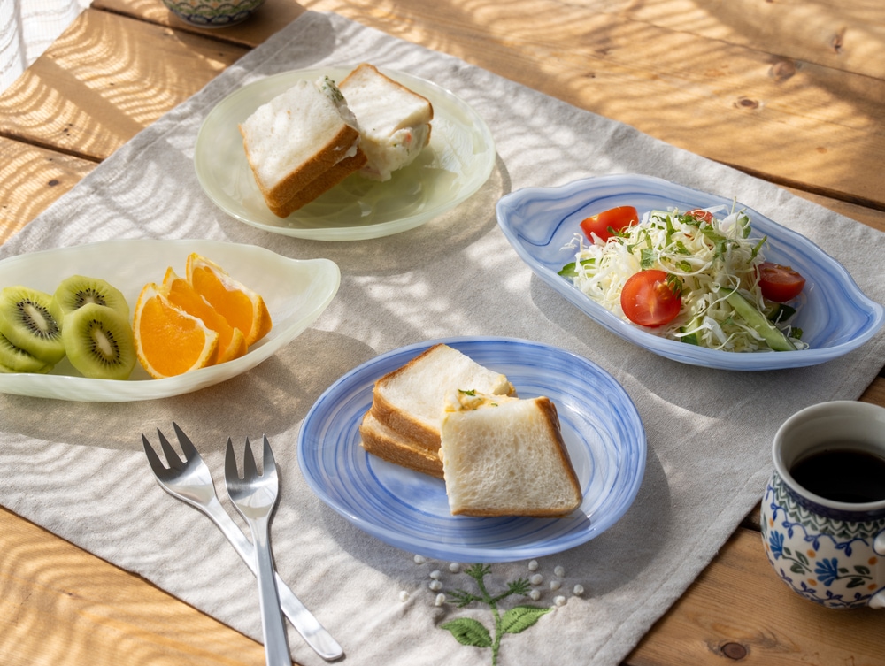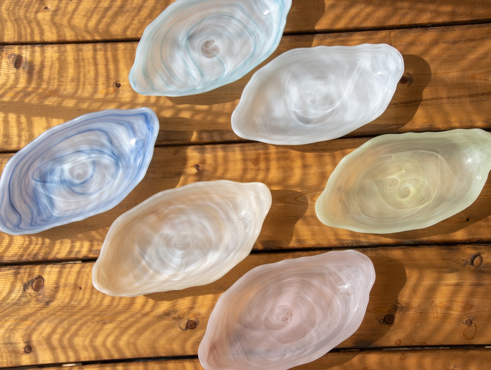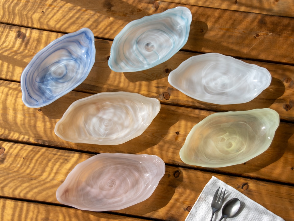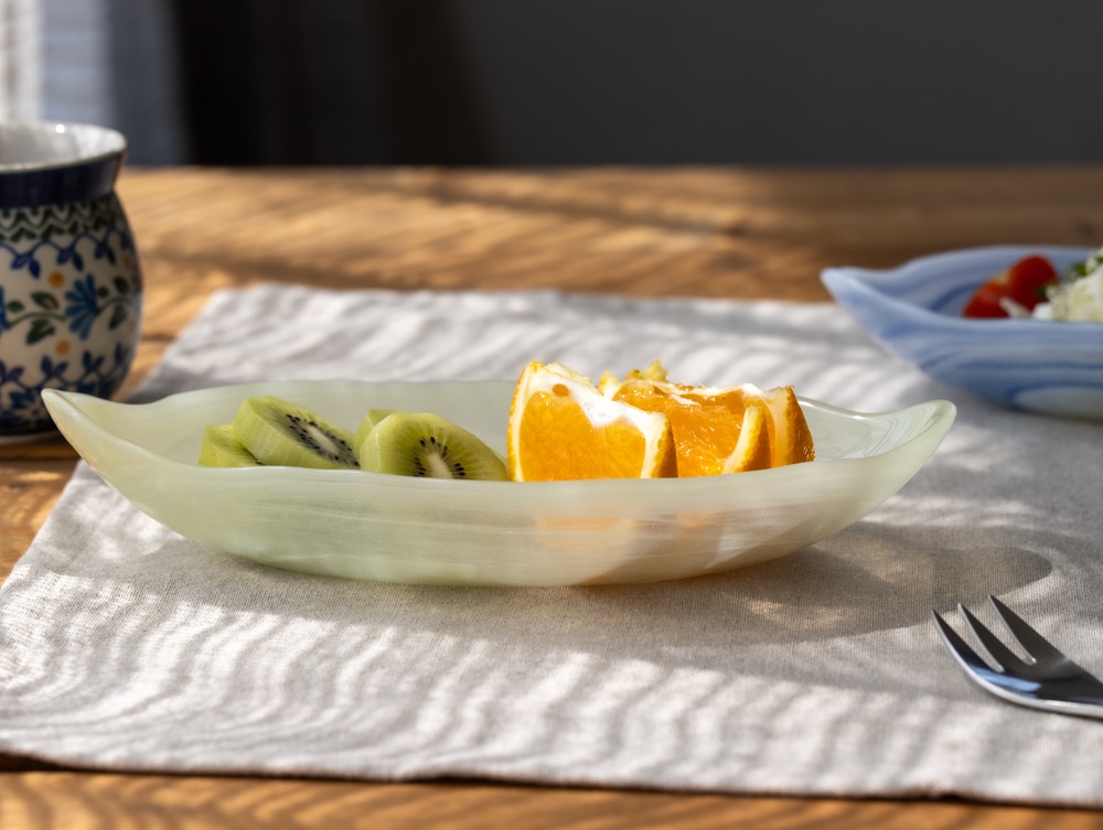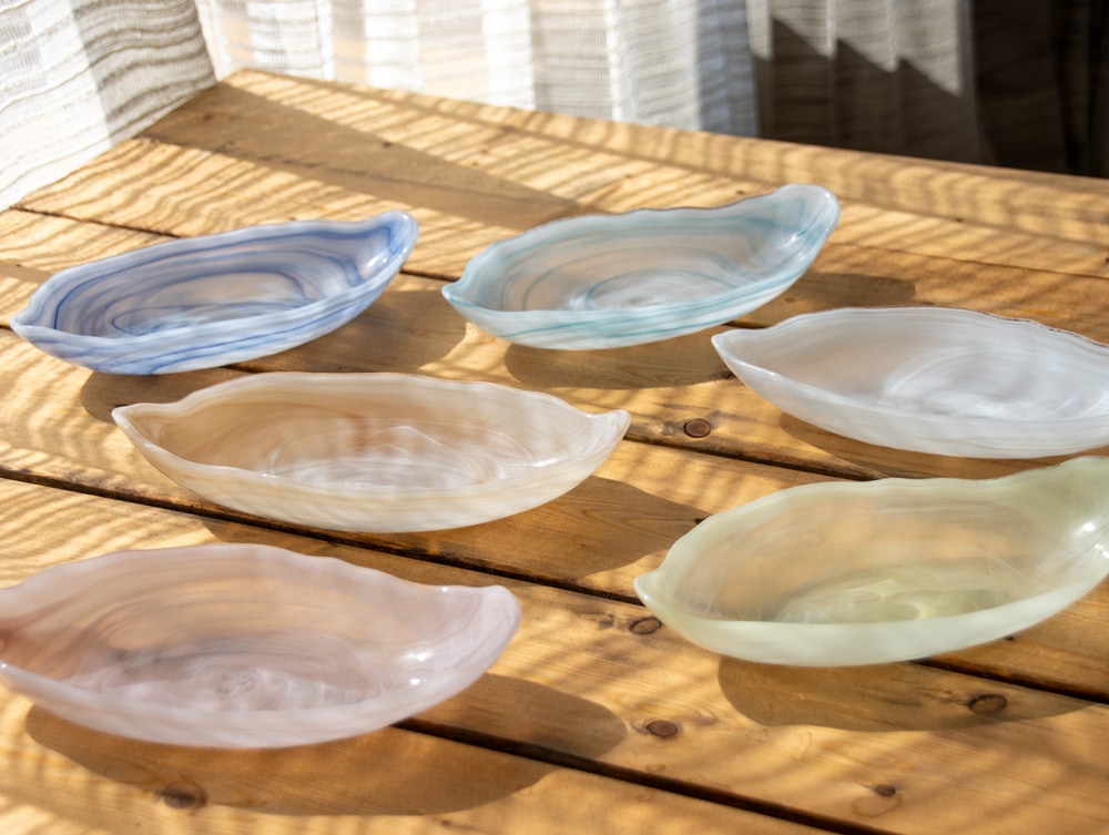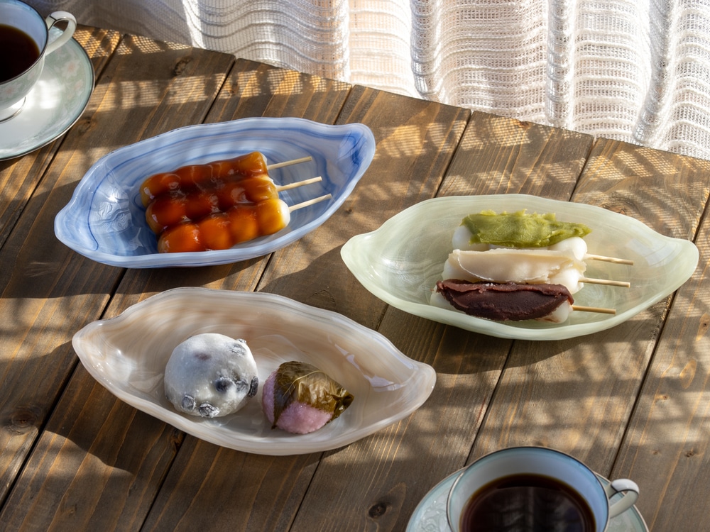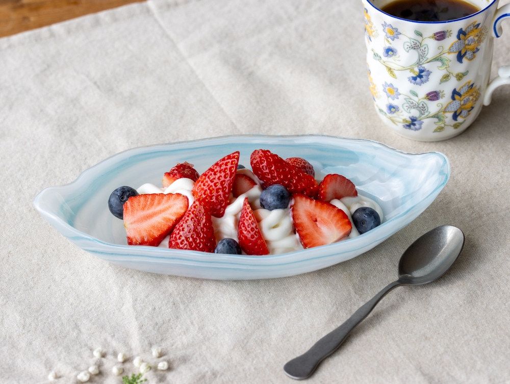 貝殻にも見える、楽しい形状の細長い楕円皿は、何を装うのか考えるのも楽しみな器。